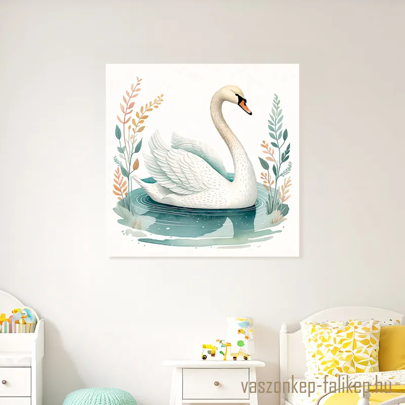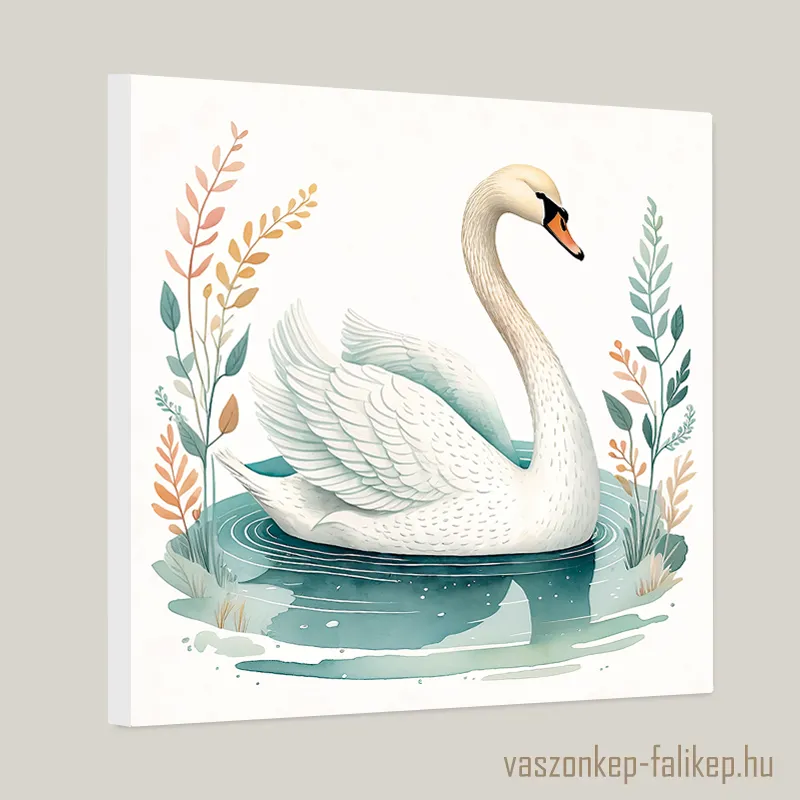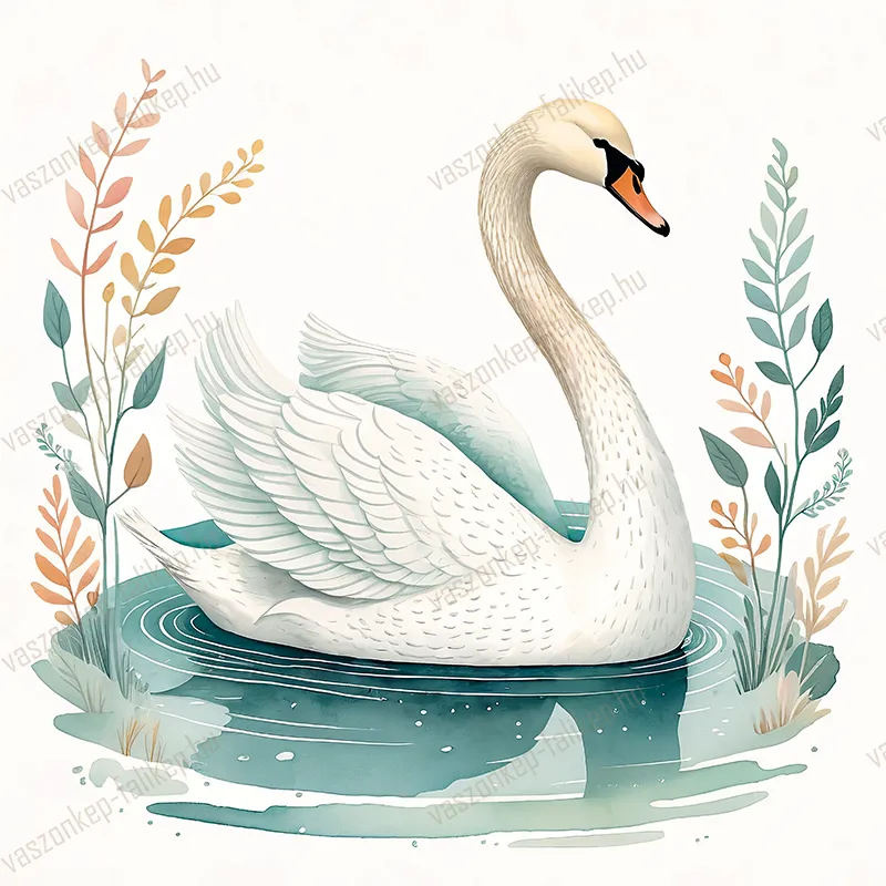 Finom, akvarelles hangulatú prémium falikép, amely egy hattyú csendes szépségét örökíti meg.