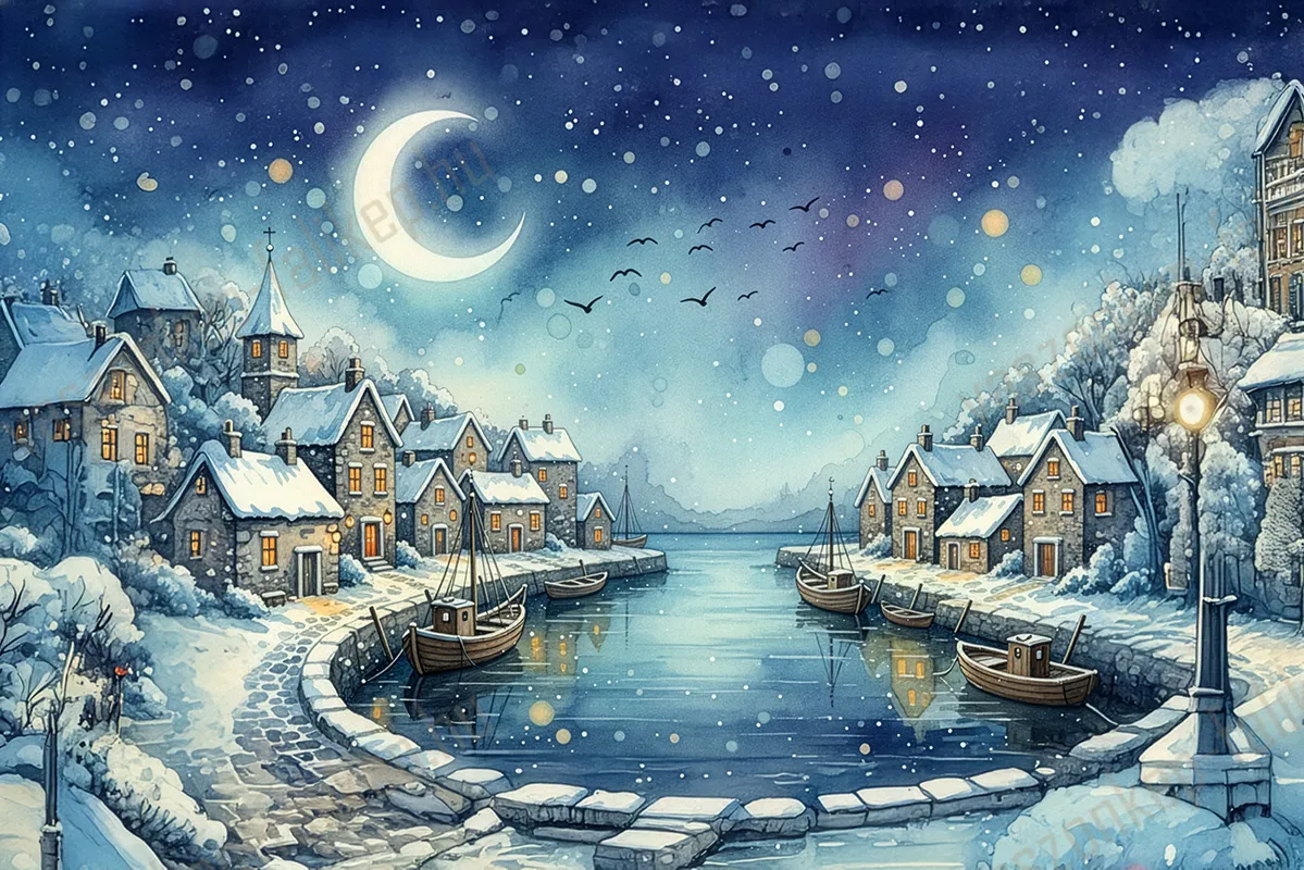 A Téli holdfényes kikötő vászonkép egy különleges alkotás, amely a csendes téli esték varázsát idézi meg. A festményszerű látvány hóval borított házakat, lágyan ringó hajókat és csillagos eget ábrázol. A holdfény finoman megvilágítja a tájat, miközben a házak ablakaiból kiszűrődő meleg fény barátságos kontrasztot teremt a hideg éjszakával szemben. Ez az egyensúly teszi igazán különlegessé ezt a prémium faliképet.